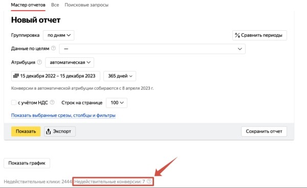 • В Мастере отчетов Яндекс Директа появились недействительные конверсии