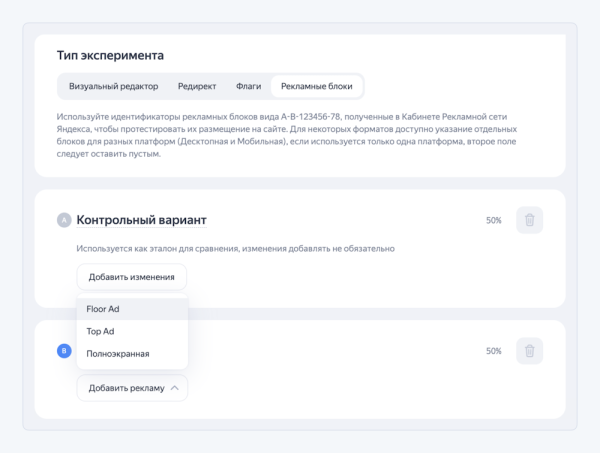 Вернуться к "В Метрике появился новый тип A/B-тестов через Varioqub – «Рекламные блоки»"